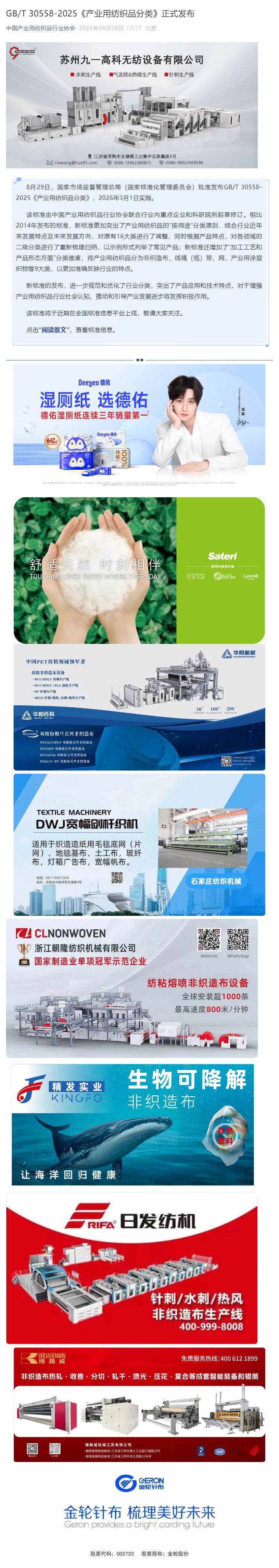 GB/T 30558-2025《产业用纺织品分类》正式发布