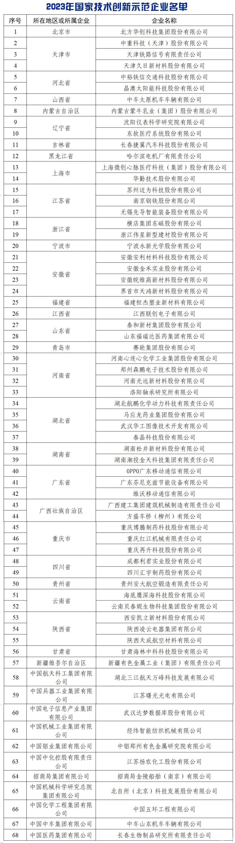 根据《技术创新示范企业认定管理办法(试行)》(工信部联科〔2010〕540号),经审核,现将2023年国家技术创新示范企业名单和国家技术创新示范企业复核评价结果通知如下。